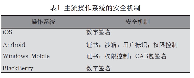 在终端及操作系统厂商方面,各主流操作系统均已引入一系列安全策略,具体如表1所示。但是,智能终端及操作系统由于设计原因仍然存在各种安全问题及漏洞。首先,移动智能终端采用开放的操作系统架构,向开发者提供API接口和开发工具包,但却往往缺乏完善的API授权机制和代码签名机制,这为各种恶意代码滥用操作系统API进行违法操作提供了条件[3]。其次,移动终端硬件层数据安全机制欠缺也是安全威胁的技术根源之一。移动智能终端用户数据的授权访问、远程保护、加密存储、远程删除以及机卡互锁等安全机制对终端厂商的要求较高,会增加终端研发成本,大部分终端厂商还未实现以上的安全机制。此外,智能终端及操作系统必然存在各种安全漏洞,并难以被全部检测和修补,需要对其进行不间断的动态安全评估和检测,目前还未形成行业内发掘、统计、发布操作系统安全漏洞的机制。